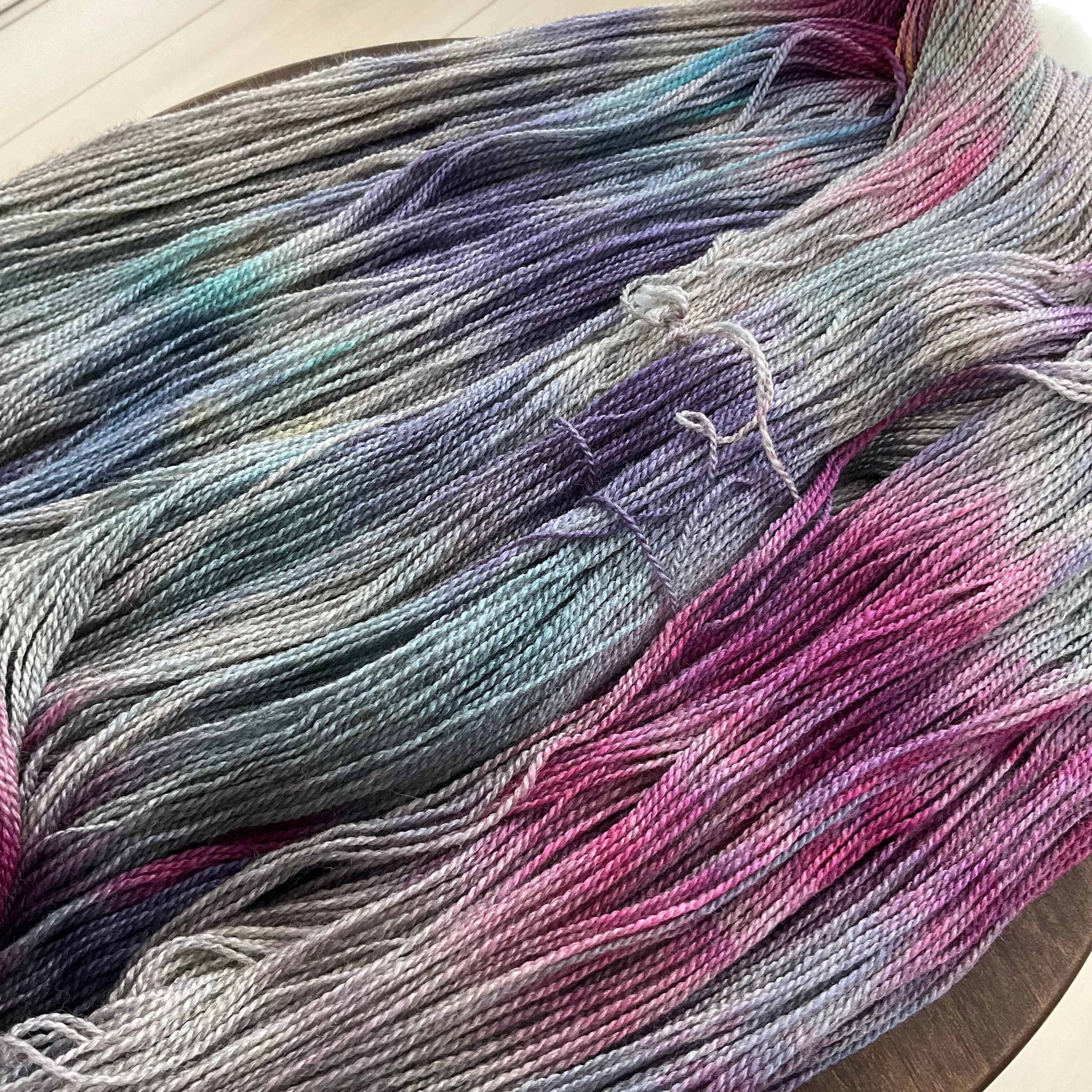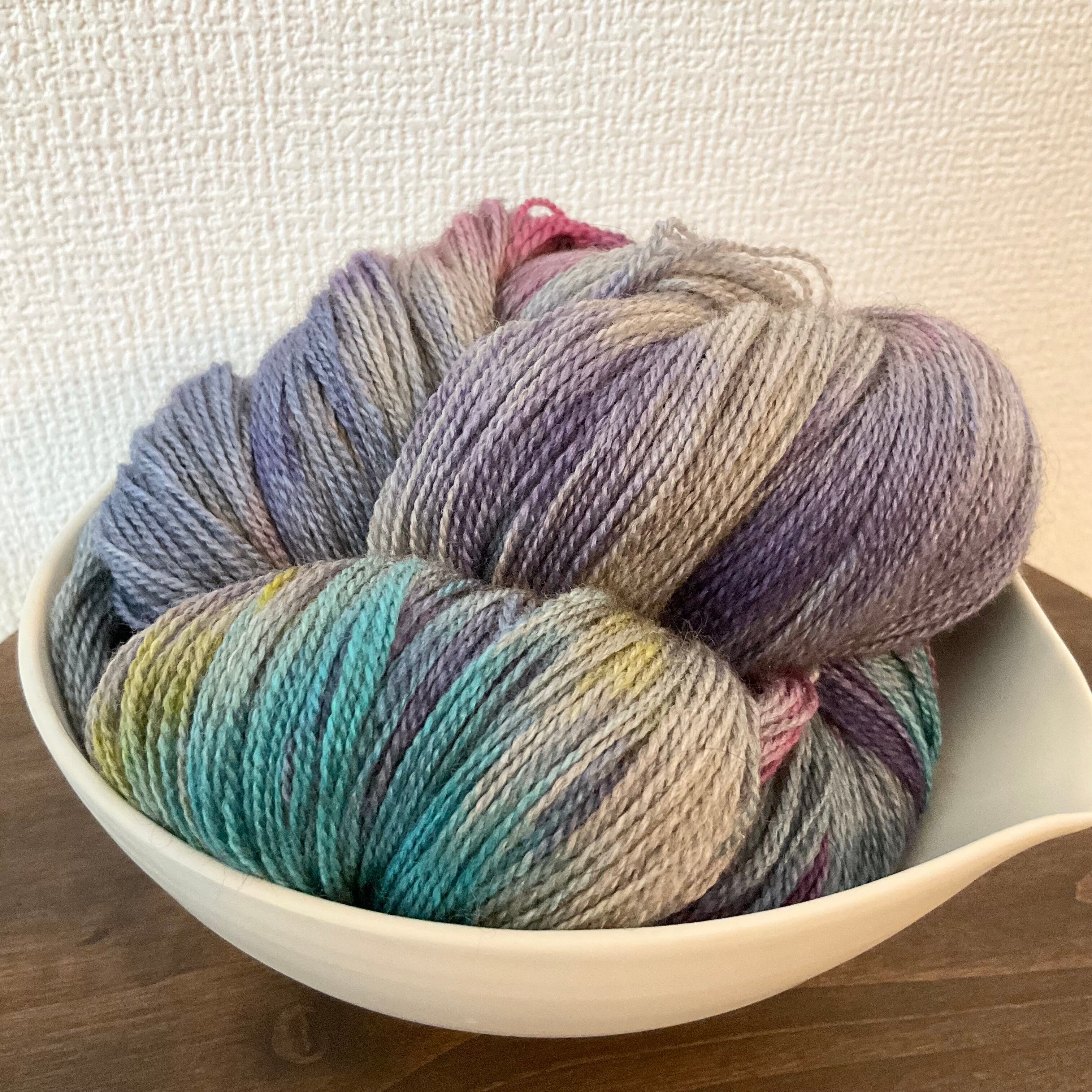灰色がかった茶色の部分は、私が染めたものではなく、元々の糸の色です、